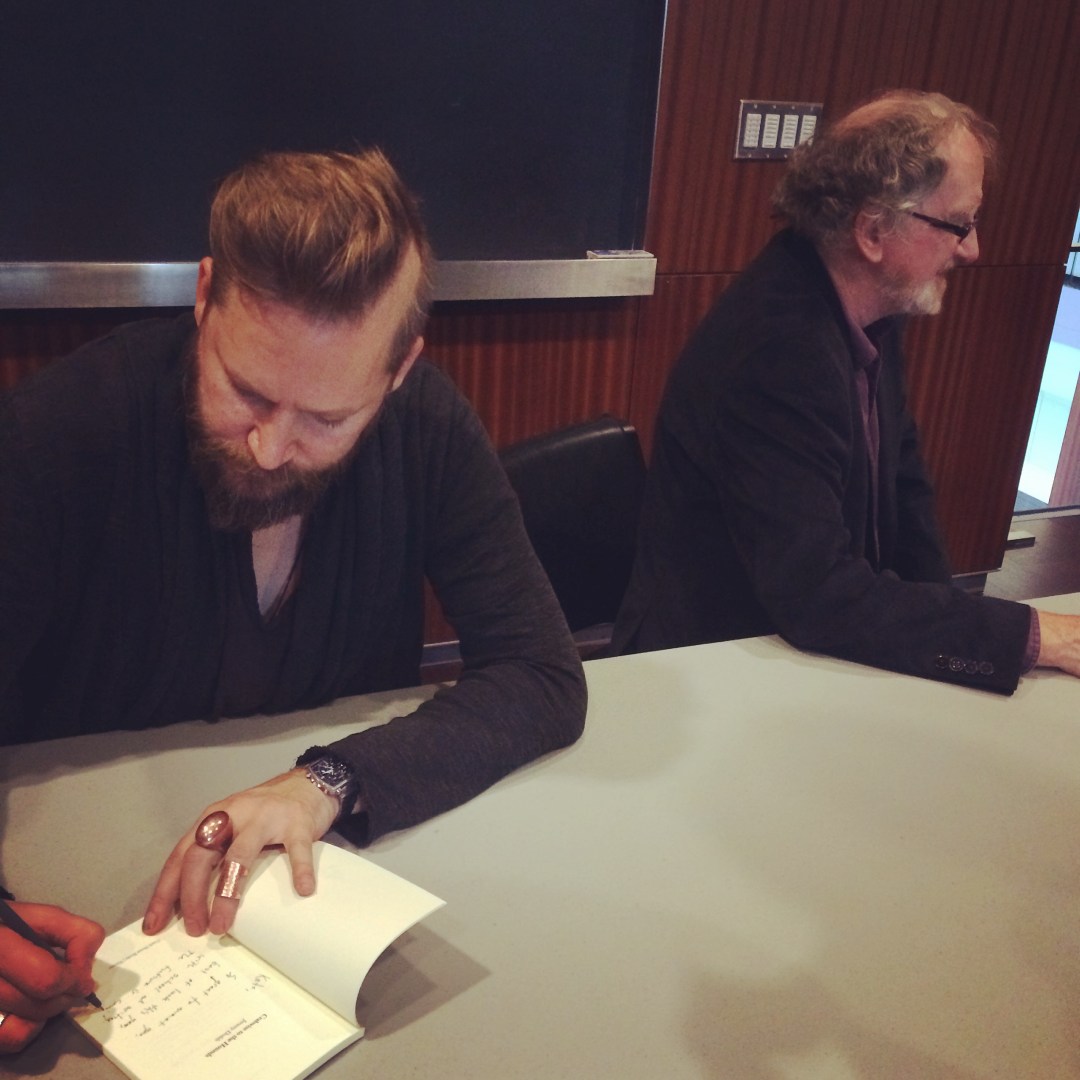 Students were treated to a “smorgasboard” of sound. don-mckay-loon Don signs. Jeramy signs Crabwise. Ali Pinkney introduces Jeramy Dodds Katherine Macleod introduces Don McKay Share this: Click to share on X (Opens in new window) X Click to share on Facebook (Opens in new window) Facebook More Click to share on Tumblr (Opens in new window) Tumblr Click to email a link to a friend (Opens in new window) Email Like Loading...
